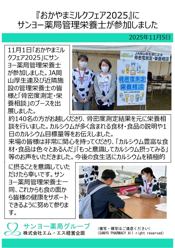 サンヨー薬局管理栄養士がおかやまミルクフェアに参加しました