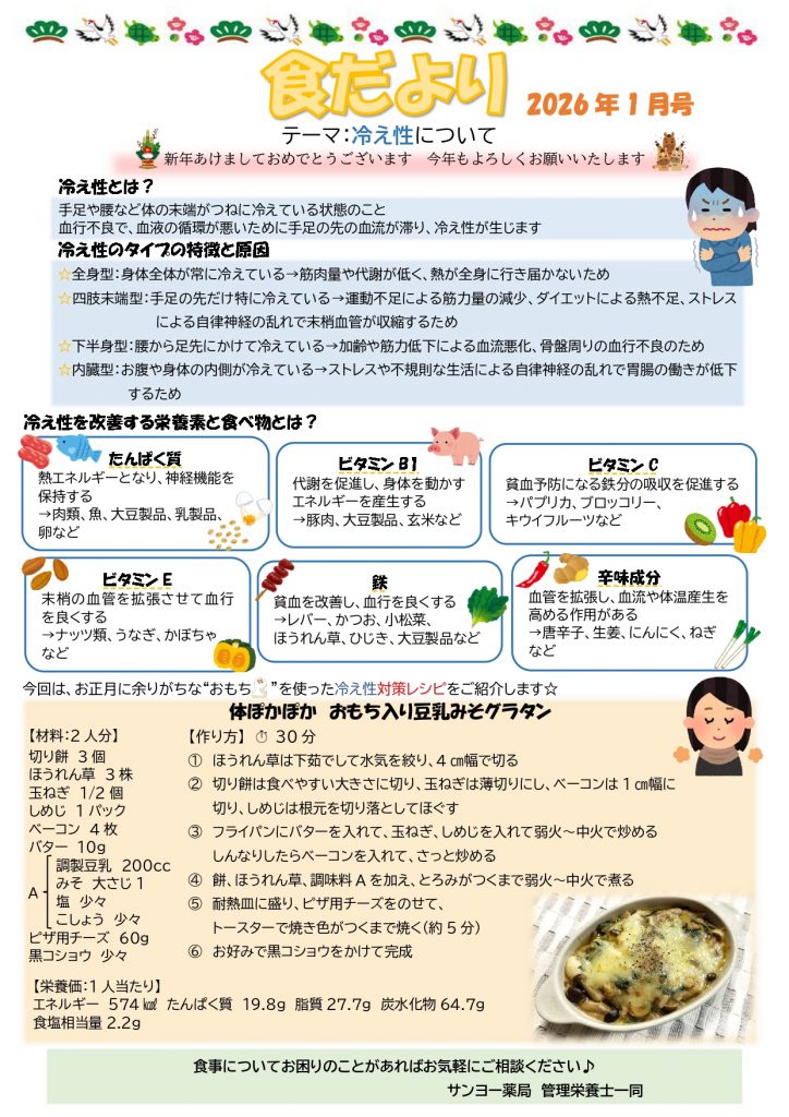 食だより 令和8年1月号 ~冷え性について~